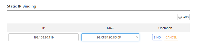 Static IP Binding eliminates the hassle of manual static IP configuration by linking a device’s unique MAC address to a specific IP address within the router’s DHCP settings. When the device reconnects to the network, the router recognizes its MAC address and automatically assigns the same IP.